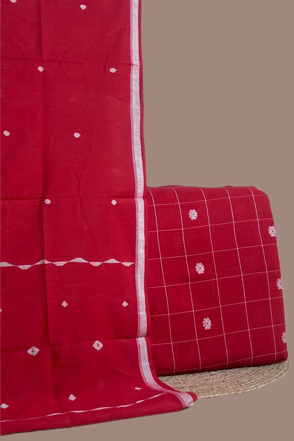 Red – 2pc Handloom Cotton Dupatta and Handloom Woven Design Top Fabric Set