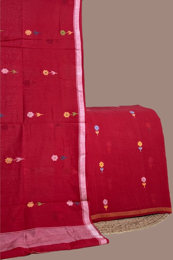 Red – 2pc Handloom Cotton Dupatta and Handloom Woven Design Top Fabric Set