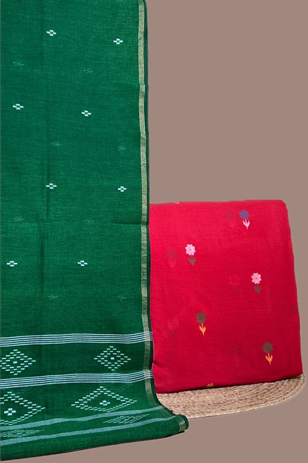 Red – 2pc Handloom Cotton Dupatta and Handloom Woven Design Top Fabric Set