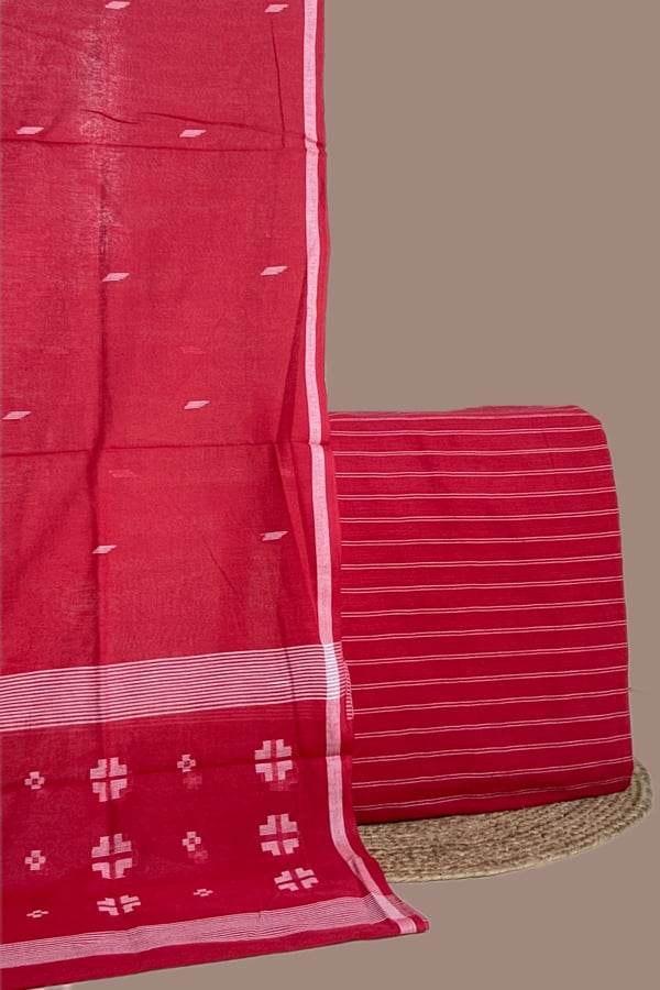 Red – 2pc Handloom Cotton Dupatta and Handloom Woven Stripes Cotton Top Fabric Set