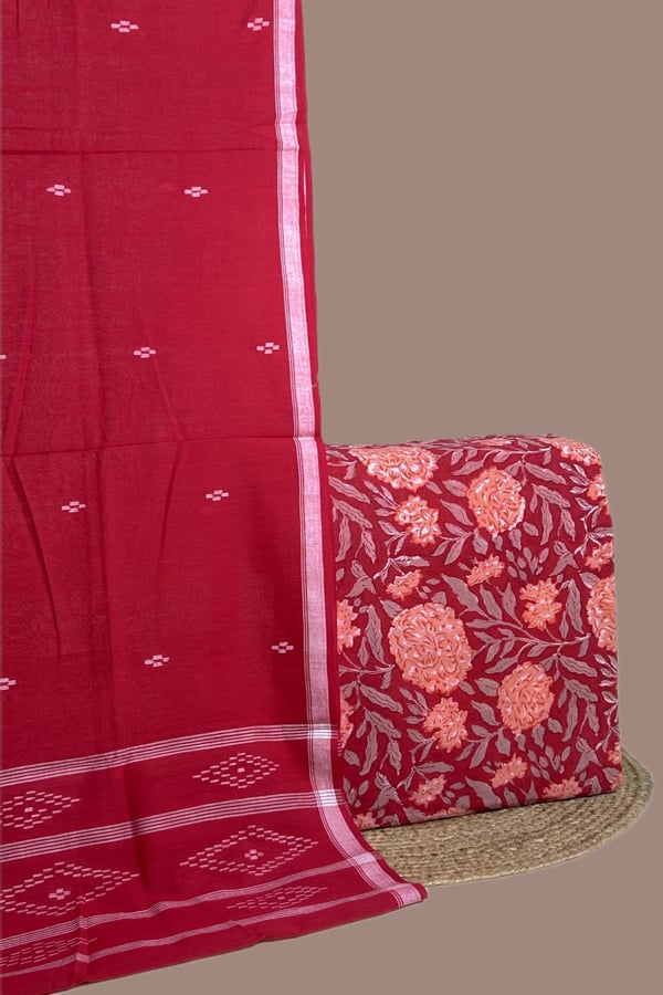 2.5mtr Each – Handloom Cotton Dupatta with HandBlock Printed Pure Soft Cotton Top Fabric Set