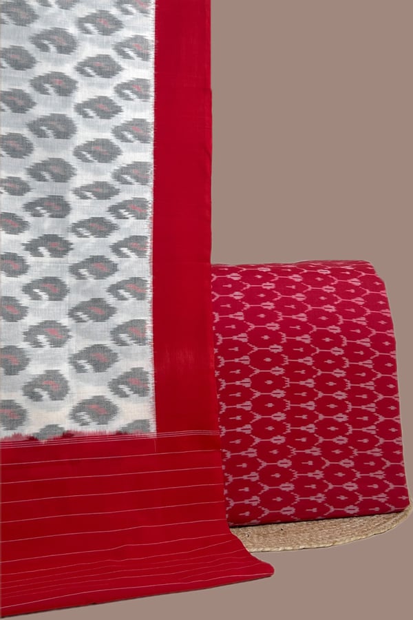 Red – 2pc Ikkat Cotton Dupatta and Handloom Soft Ikkat Cotton Top Fabric Set
