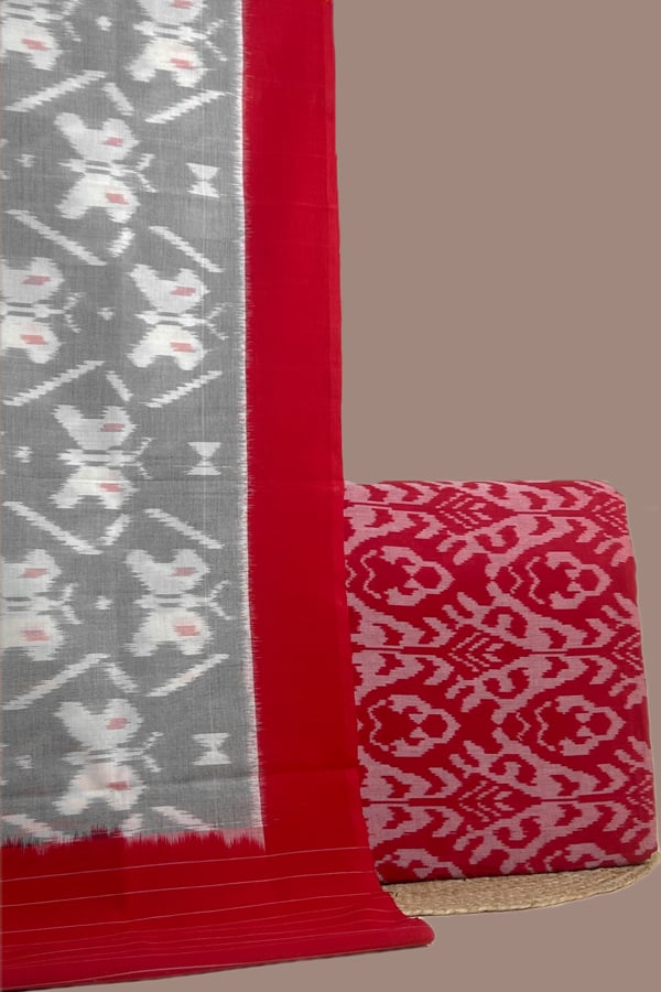 Red – 2pc Ikkat Cotton Dupatta and Handloom Soft Ikkat Cotton Top Fabric Set