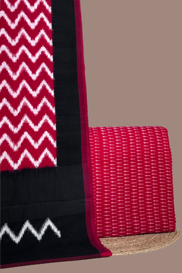 Red – 2pc Ikkat Cotton Dupatta and Handloom Soft Ikkat Cotton Top Fabric Set