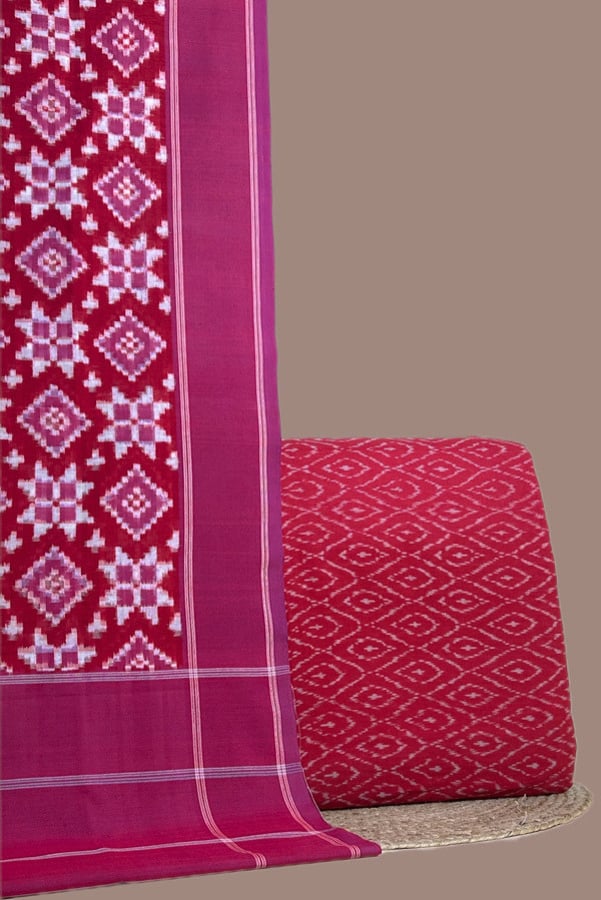 Red – 2pc Ikkat Cotton Dupatta and Handloom Soft Ikkat Cotton Top Fabric Set