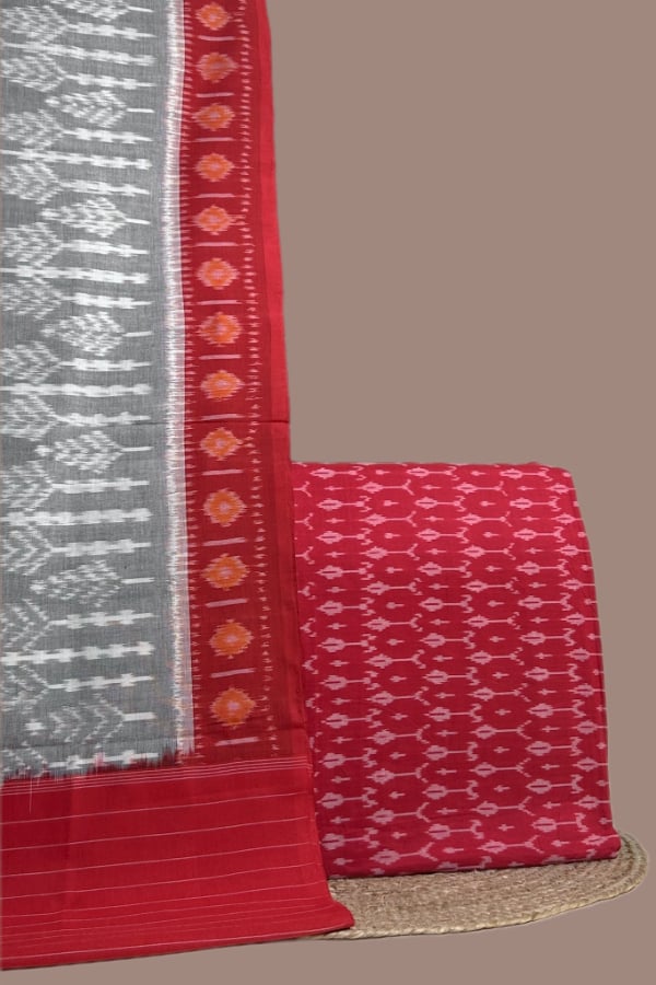 Red – 2pc Ikkat Cotton Dupatta and Handloom Soft Ikkat Cotton Top Fabric Set
