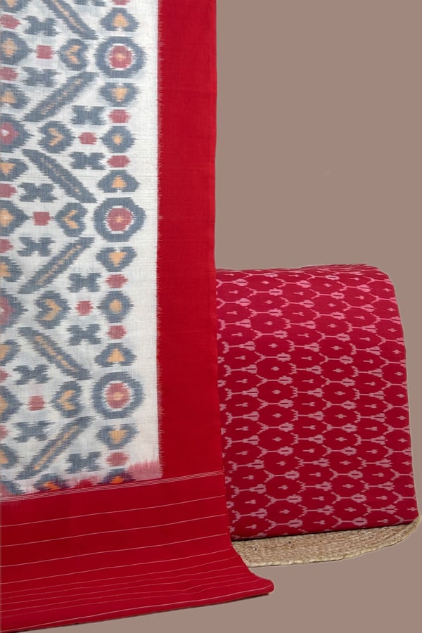 Red – 2pc Ikkat Cotton Dupatta and Handloom Soft Ikkat Cotton Top Fabric Set