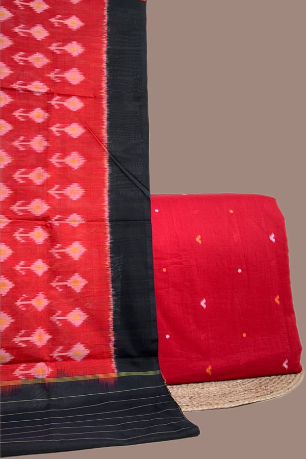 Red – 2pc Ikkat Cotton Dupatta and Handloom Woven Motif Cotton Top Fabric Set