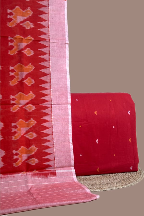 Red – 2pc Ikkat Cotton Dupatta and Handloom Woven Motif Cotton Top Fabric Set