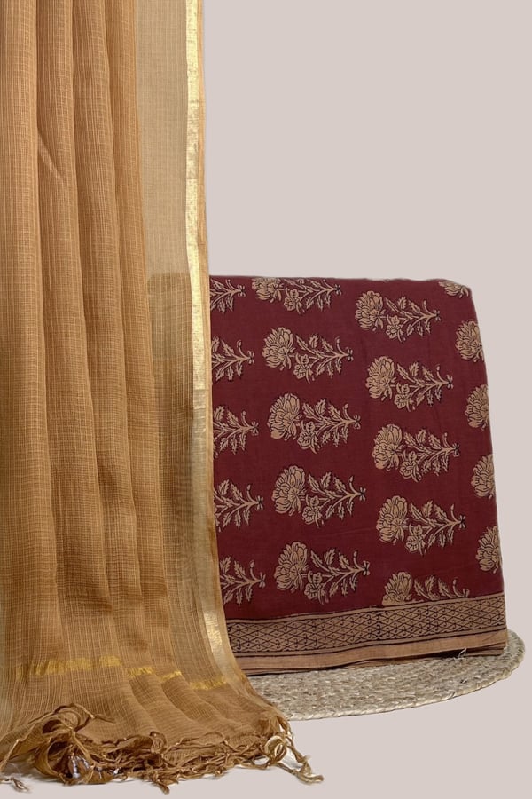 2.5mtr Each – Kota Doria Dupatta and Bagh Blockprint Top Cotton Fabric Set