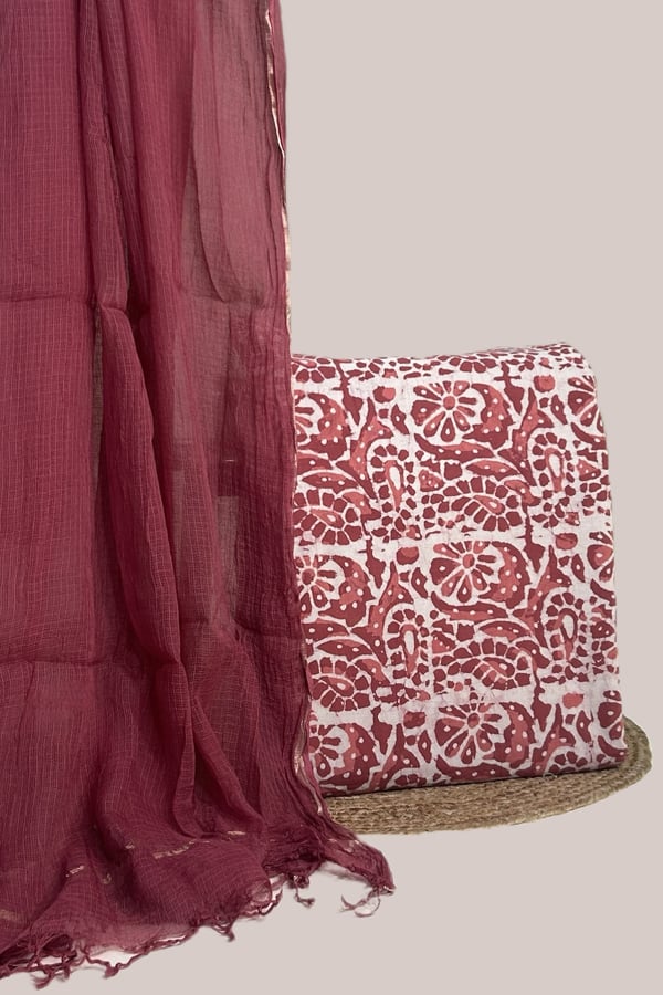 2.5mtr Each – Kota Doria Dupatta with Bagru HandBlock Cotton Top Fabric Set