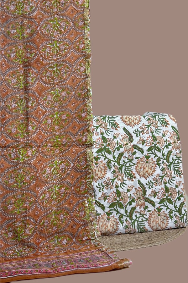 2pc Pure Soft Cotton Blockprinted Top and Bottom Fabric Set