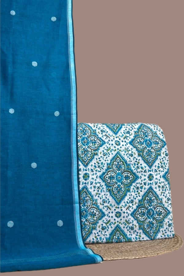 2.5mtr Each – Handloom Cotton Dupatta with HandBlock Printed Pure Soft Cotton Top Fabric Set