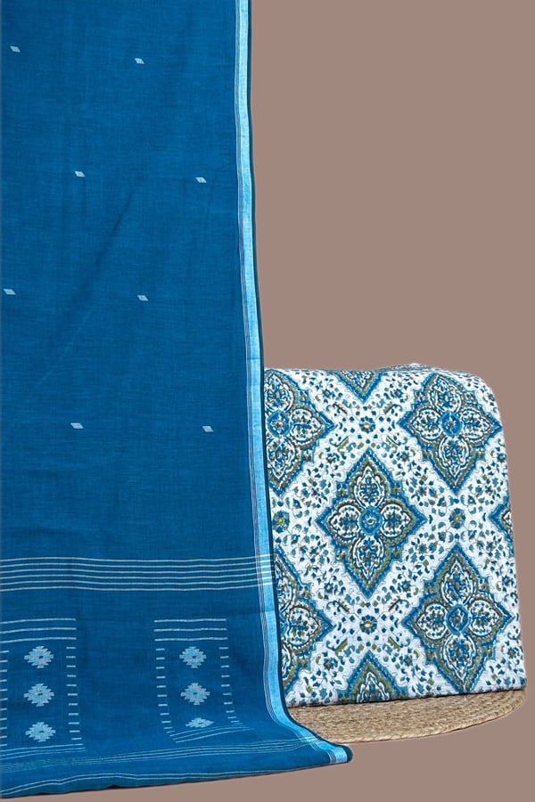2.5mtr Each – Handloom Cotton Dupatta with HandBlock Printed Pure Soft Cotton Top Fabric Set