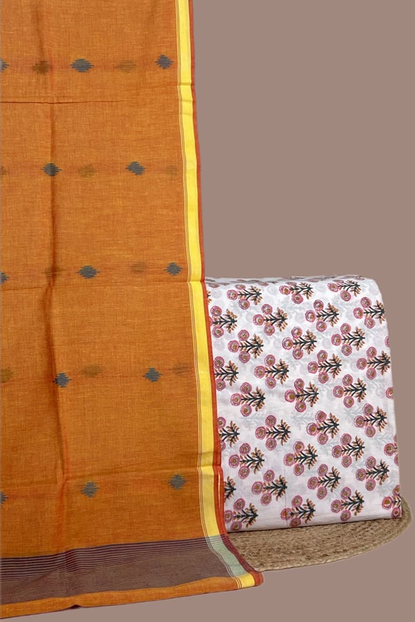 2.50mtr Each– Handloom Cotton Dupatta with HandBlock Printed Pure Soft Cotton Top Fabric Set
