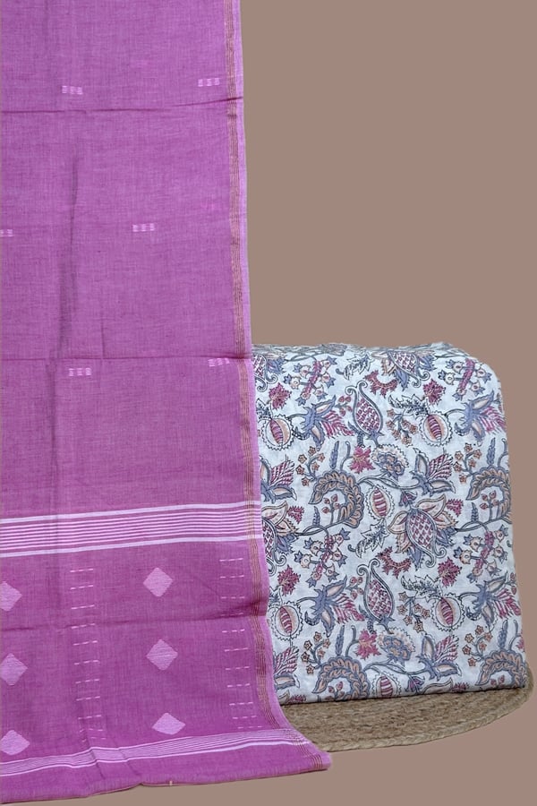 2.5mtr Each – Handloom Cotton Dupatta with HandBlock Printed Pure Soft Cotton Top Fabric Set