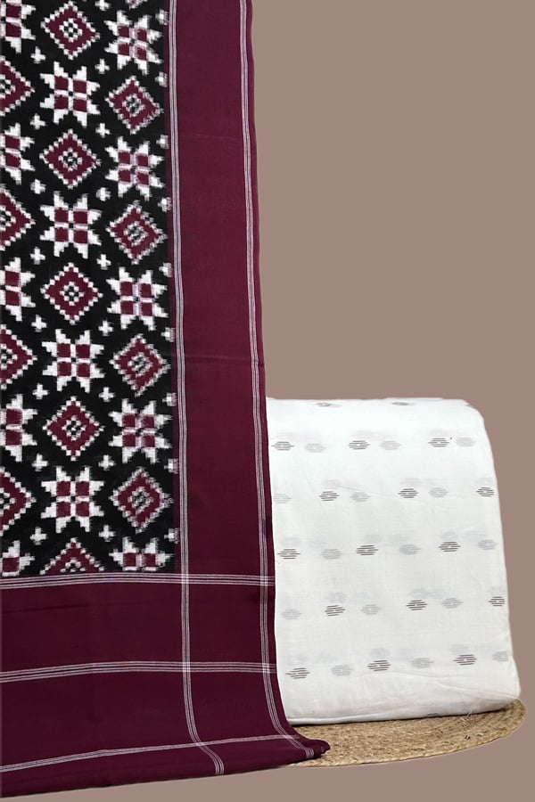 White – 2pc Ikkat Cotton Dupatta and Handloom Soft Ikkat Cotton Top Fabric Set