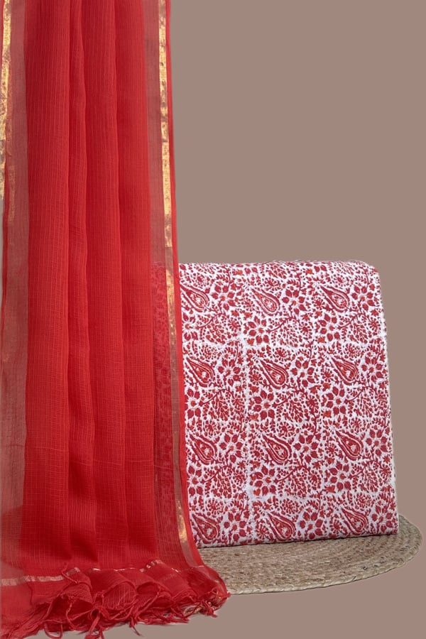 2.5mtr Each – Kota Doria Dupatta with HandBlock Printed Pure Soft Cotton Top Fabric Set