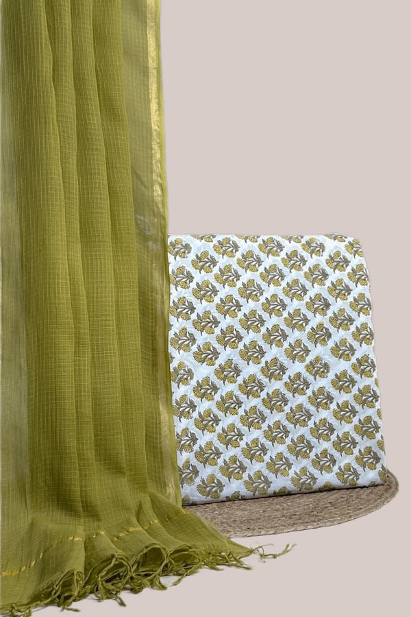 2.5mtr Each – Kota Doria Dupatta with HandBlock Printed Pure Soft Cotton Top Fabric Set