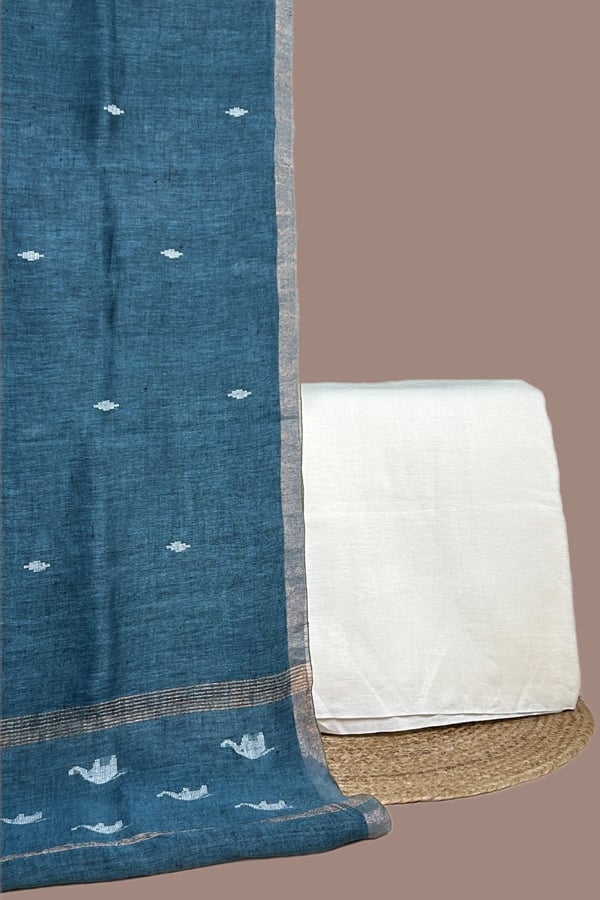 Authentic Handloom Woven Premium Soft Linen Dupatta And Pure Handloom Linen Top Fabric