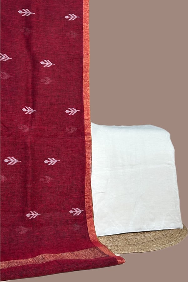 Authentic Handloom Woven Premium Soft Linen Dupatta And Pure Handloom Linen Top Fabric