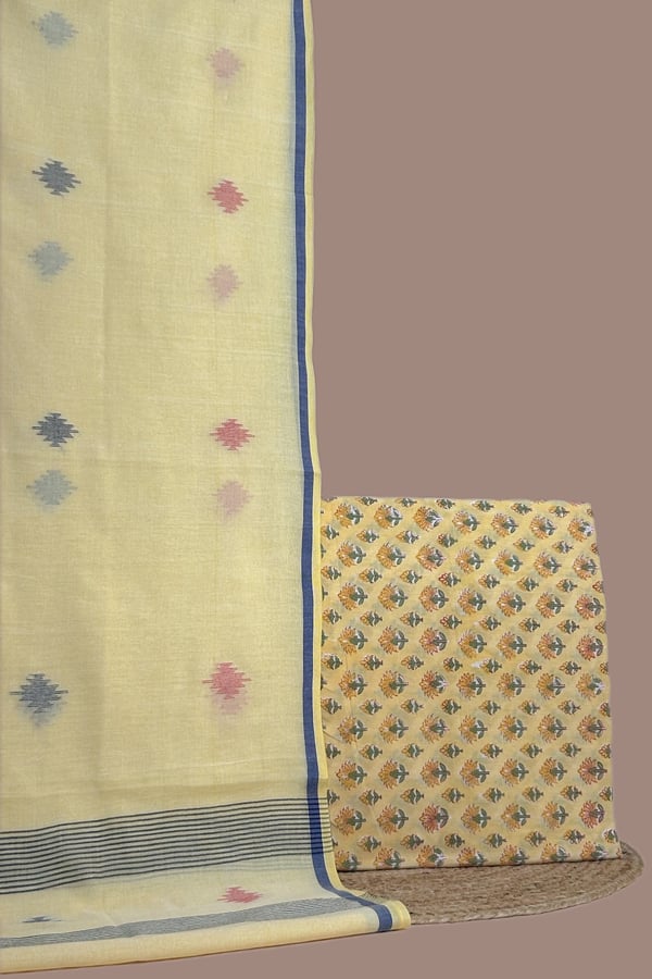 2.5mtr Each – Handloom Cotton Dupatta with HandBlock Printed Pure Soft Cotton Top Fabric Set