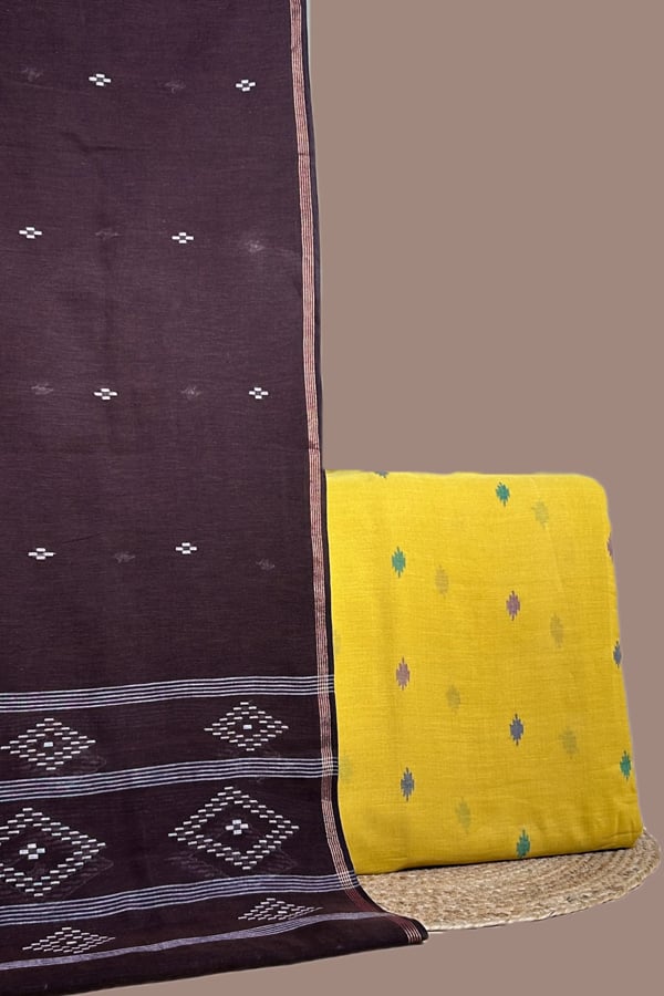 Yellow – 2pc Handloom Cotton Dupatta and Handloom Woven Design Top Fabric Set