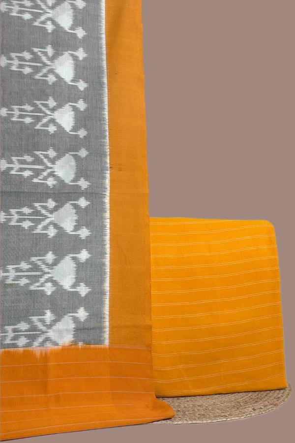 2.5mtr Each – Ikkat Cotton Dupatta with Handloom Stripes Soft Cotton Top Fabric Set