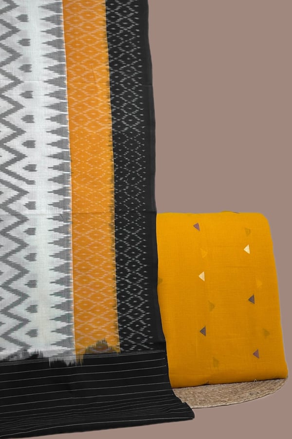 2.5mtr Each – Ikkat Cotton Dupatta with Handloom Woven Motif Cotton Top Fabric Set