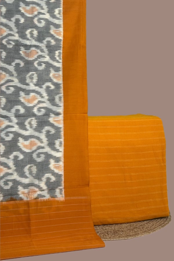 2.5mtr Each – Ikkat Cotton Dupatta with Handloom Woven Stripes Soft Cotton Top Fabric Set