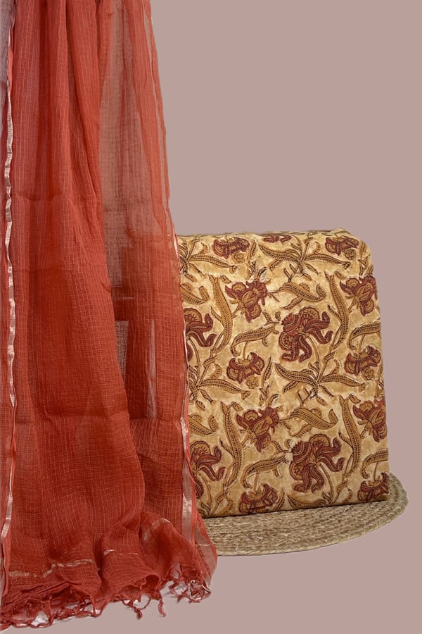 2.5mtr Each – Kota Doria Dupatta with Bagru HandBlock Cotton Top Fabric Set
