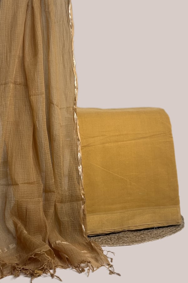 2.5mtr Each – Kota Doria Dupatta with Mangalgiri Zari Border Handwoven Cotton Top Fabric Set