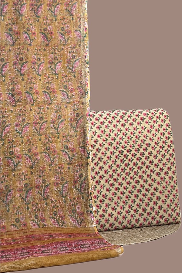 2.5mtr Each – Kota Doria Dupatta with HandBlock Printed Pure Soft Cotton Top Fabric Set