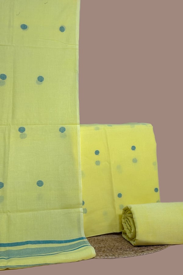Yellow – 3Pc (3mtr Top) Handloom Cotton Dupatta with Woven Motif Top & Handloom Soft Cotton Bottom Fabric Set