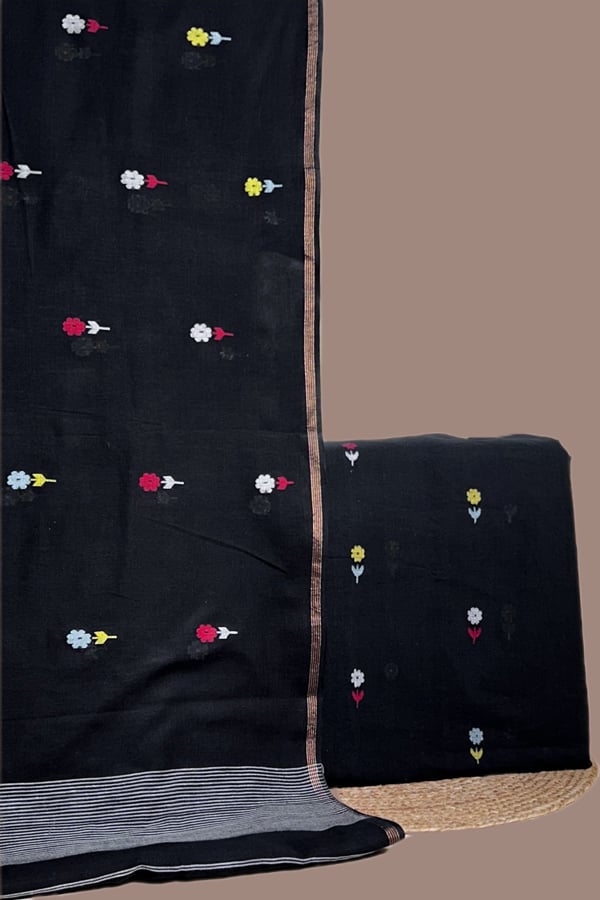 Black – 2pc Handloom Cotton Dupatta and Handloom Woven Design Top Fabric Set