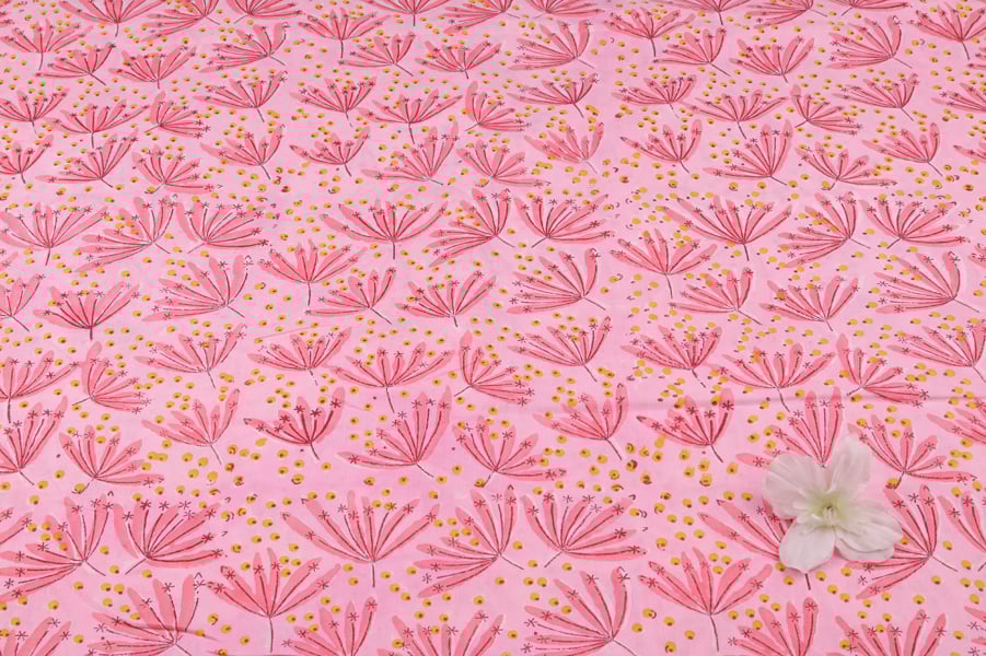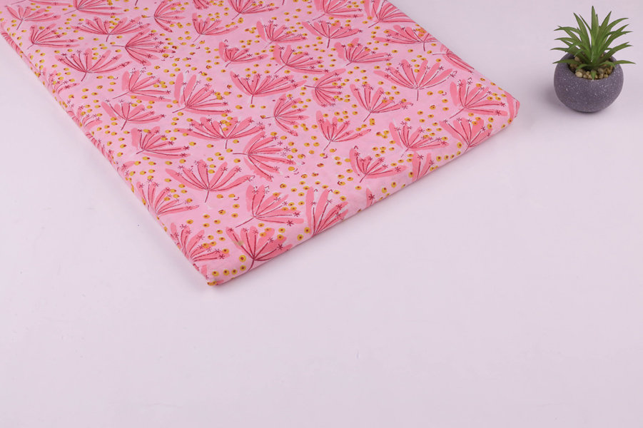 Blush Pink Floral Handblock Printed 100% Pure Soft Cotton Fabric