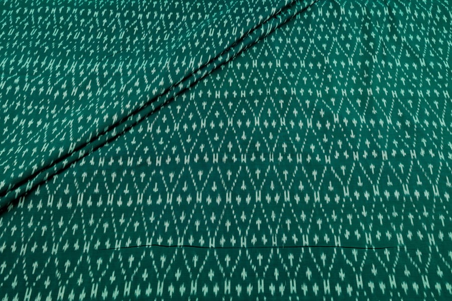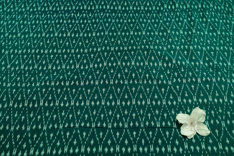 Emerald Green Soft Cotton Handwoven Ikkat Fabric