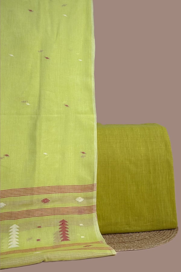Green – 2pc Handloom Cotton Dupatta and Mangalgiri Cotton Top Fabric Set