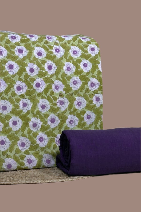 2.5mtr Each – HandBlock Printed Pure Soft Cotton Top With Handloom Cotton Bottom Fabric Set