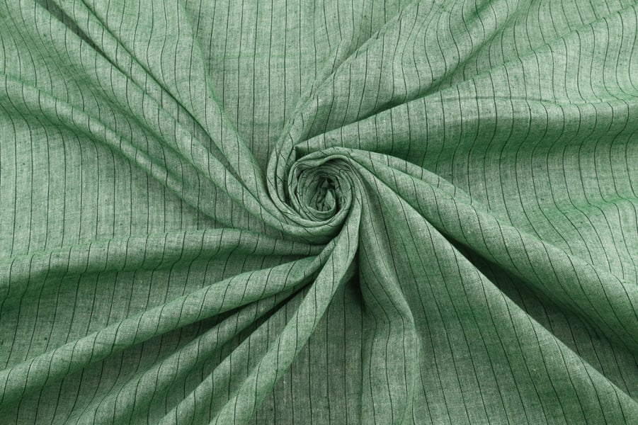 Muted Sage Green Authentic HandLoom Woven Stripes Flowy Soft Cotton Fabric