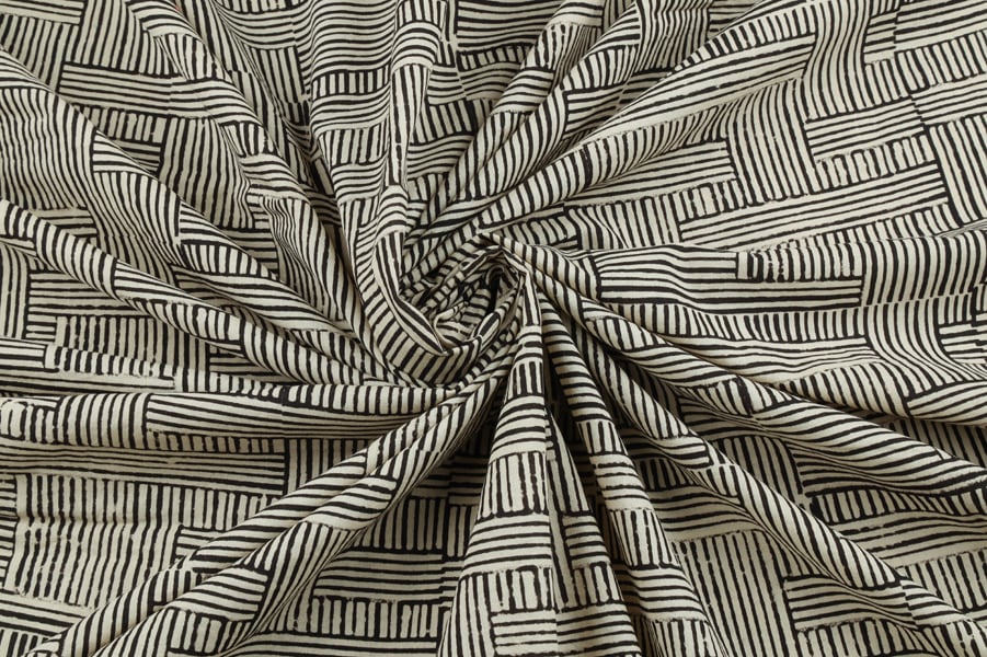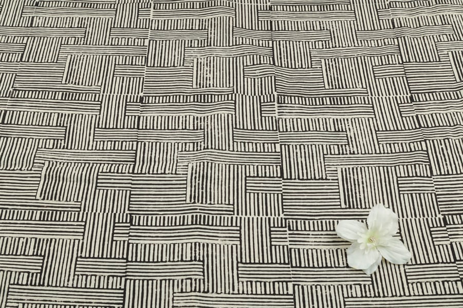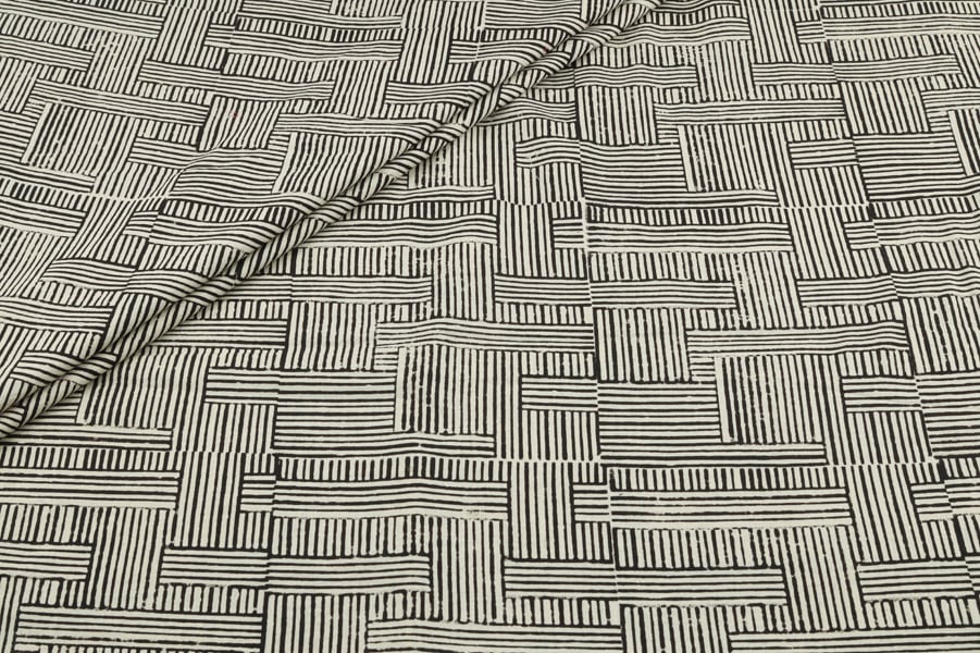 Natural Black Bagru Handblock Printed Cotton Fabric