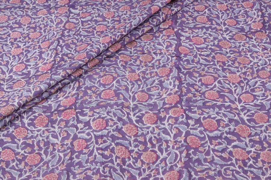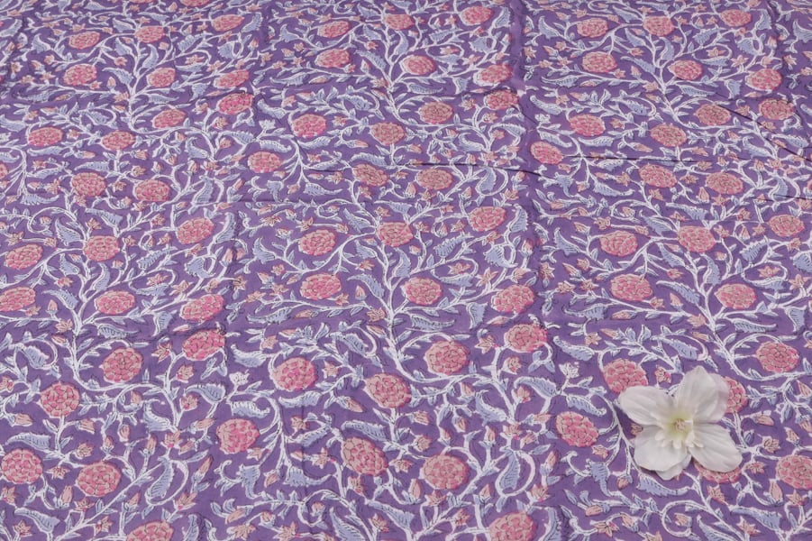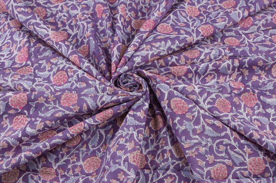 Royal Purple Floral Handblock Printed 100% Pure Soft Cotton Fabric