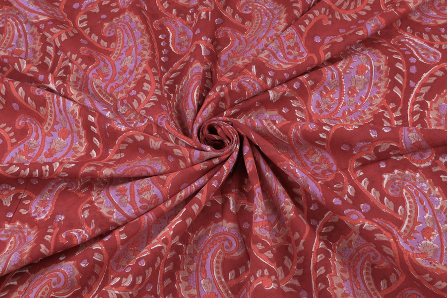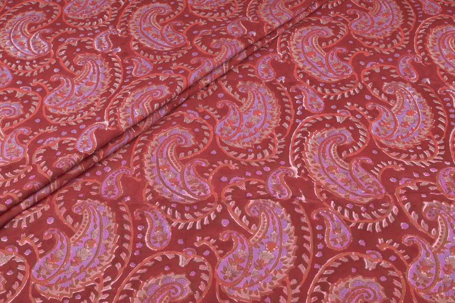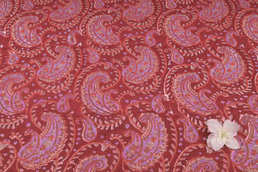 Ruby Red Floral Handblock Printed 100% Pure Soft Cotton Fabric