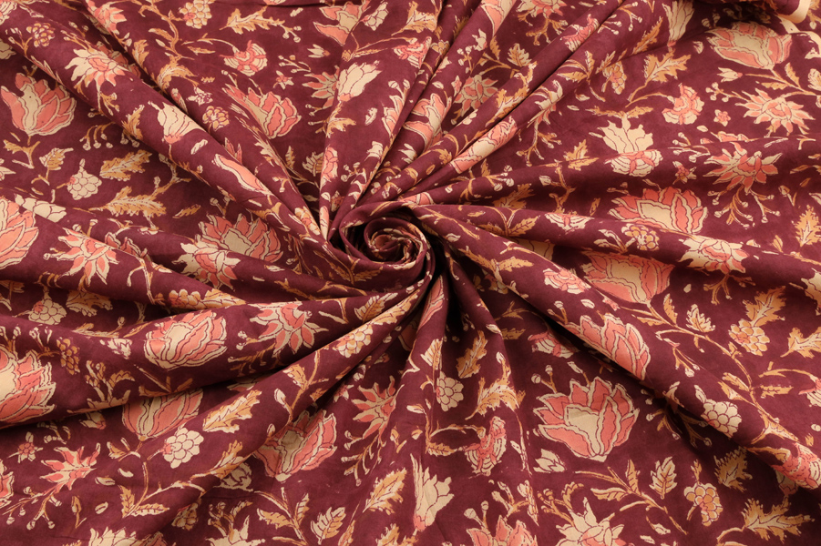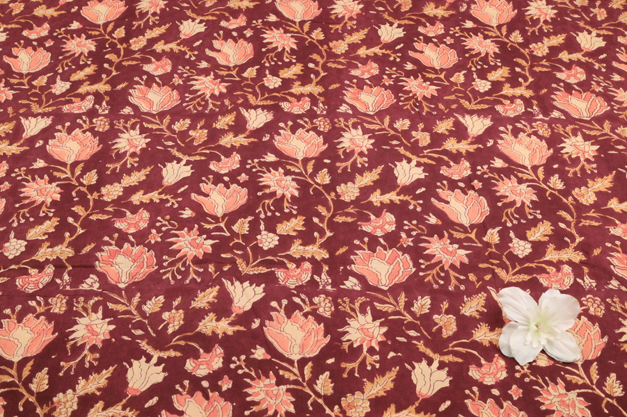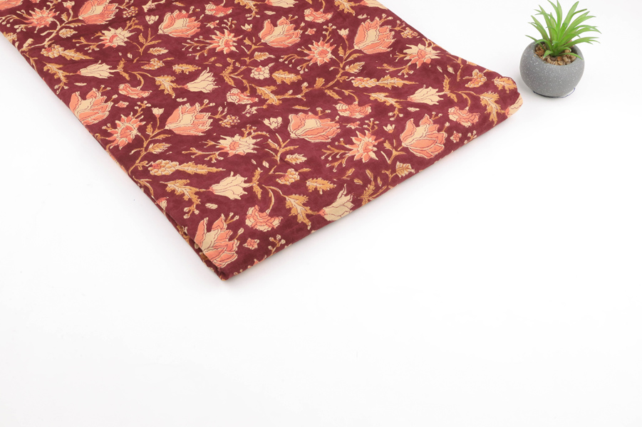Rust Maroon Pure Soft Cotton HandBlock Printed Fabric