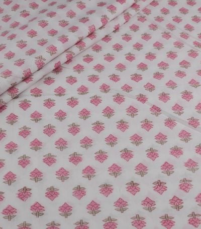 Pre-Cut 1.60m White Floral Handblock Printed 100% Pure Soft Cotton Fabric
