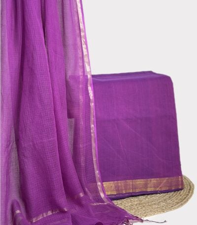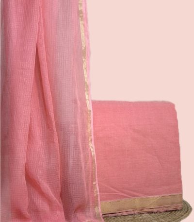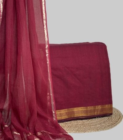 2pc Kota Doria Dupatta and Mangalgiri Zari Border Handwoven Pure Cotton Set