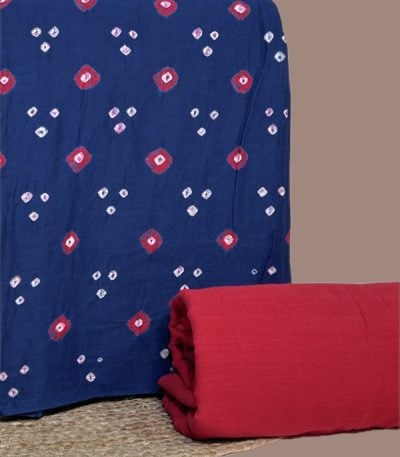 2pc Hand Tie-Dye Bandhani Pure Cotton Top With Handloom Bottom Fabric Set