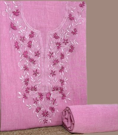 2Pc Handloom Embroidered Neck Design Soft Cotton Top(3m) Bottom(2.5m) Fabric Set