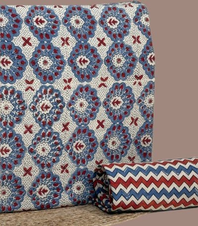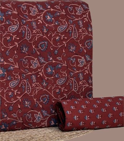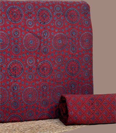 Red – 2pc Ajrakh HandCrafted Cotton Top and Bottom Cotton Fabric Set