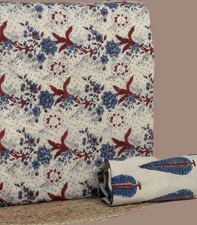White – 2pc Ajrakh HandCrafted Cotton Top and Bottom Cotton Fabric Set